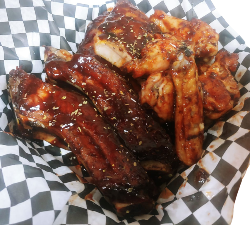 With the large success of our carnivore bowl, we took it a step further with our mammoth bowl. This bowl has 3 beef ribs, full rack of pork side ribs, half rack of baby back ribs, and ten oven baked chicken wings. All topped with your choice of sauce (NO mammoths were harmed in the making of this bowl)