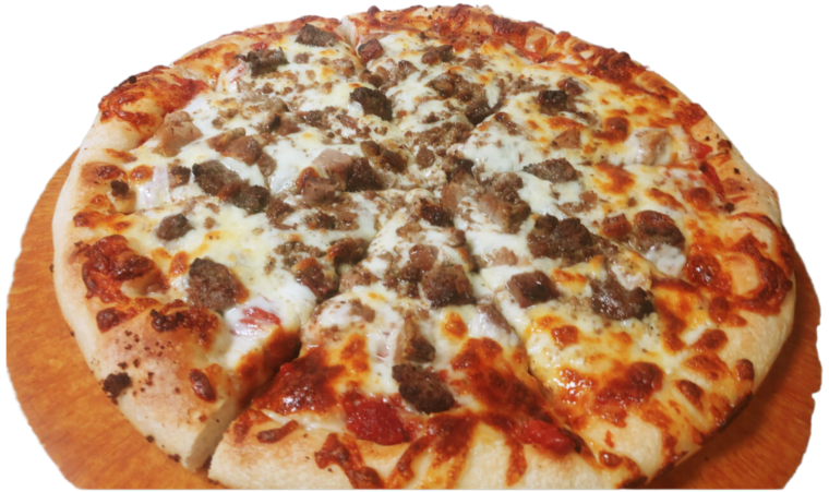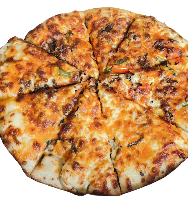 Our newest, must-try pizza! Made with BBQ burnt pork ends, Italian sausage, marinated porkloin, garlic-infused pork shoulder, BBQ sauce & cheddar!
